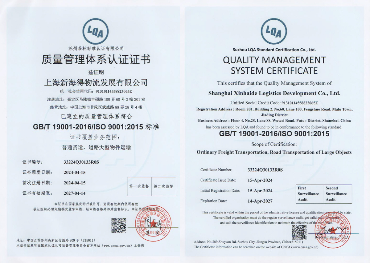 新海得物流嚴(yán)格按現(xiàn)代物流操作流程進(jìn)行標(biāo)準(zhǔn)化運(yùn)作。已通過(guò)國(guó)際質(zhì)量管理體系ISO9001:2015體系認(rèn)證。運(yùn)用健全的客戶服務(wù)管理系統(tǒng)、車輛管理系統(tǒng),財(cái)務(wù)管理系統(tǒng)。在查詢、監(jiān)控、追蹤、結(jié)算等方面與客戶做到無(wú)縫對(duì)接,打造了專業(yè)高效的客戶服務(wù)體系。